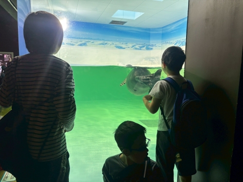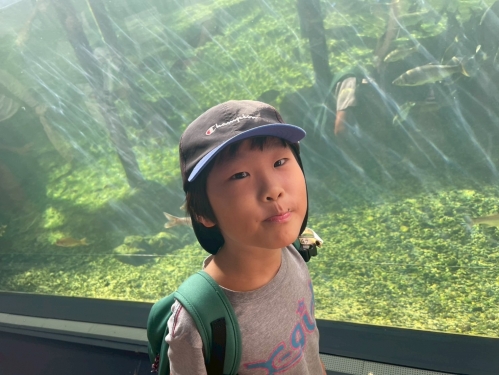 琵琶湖博物館 posted by ハニーレモンスタッフ 2025.09.15 課外活動 三連休ということで予約ができる 琵琶湖博物館へ行ってきました。 人気なのはやはり水族展示コーナーでした! あざらしと大きなサメに釘付けでした。 去年は怖くて行けなかった大きな象の展示室では 写真と撮れることができ、成長しました☆笑 家電の歴史コーナーでは、 懐かしのおもちゃの展示もあり、 「あれ知ってる~」と盛り上がっていました。 博物館