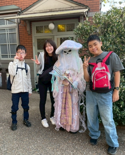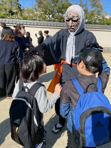 映画村内を歩いている妖怪と写真を撮り、