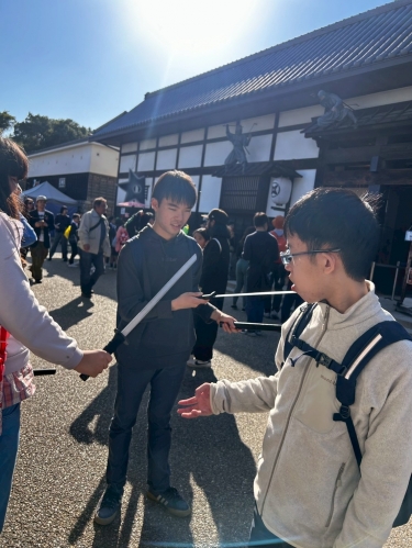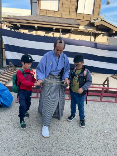 お侍さんから刀の使い方も教わりました。