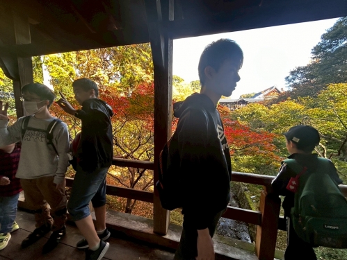 東福寺 ~紅葉狩り~ posted by ハニーレモンスタッフ 2025.11.15 課外活動 今年は東福寺へ紅葉を観に行きました! 少し早かったかな…とは思いましたが、 綺麗に色付いていました^_^ 少し早めの紅葉時期であったからか、 そこまで混雑しておらず、 動きやすくて良かったです☆ 東福寺内を散策後、近くの公園へ移動し 遊具で遊んだり、坂を駆け上ったり 追いかけっこをしたり… 元気いっぱい遊びました! 紅葉