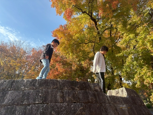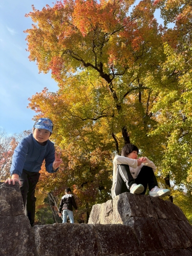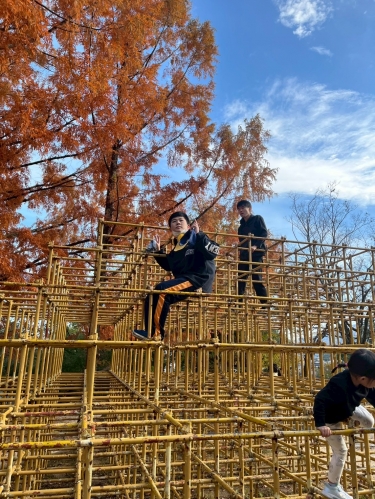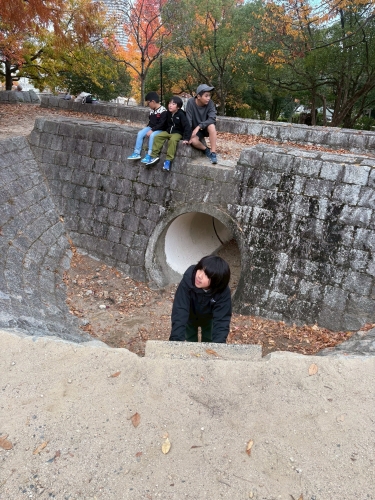 皇子が丘公園 posted by ハニーレモンスタッフ 2025.11.24 課外活動 大津市にある公園へ行きました。 公園には大きな石垣があり、 そこに上ったり、アリ地獄があったり、 地下道のようなものがあったり… 子どもたちはワクワク♩ またジャングルジムも大きく 上るのを楽しんでいました^_^ 石垣は元々皇子山陸軍の射的場として 使われていたとか?! 紅葉もとても綺麗で、電車も見れて 楽しまれていました☆ 公園・体育館紅葉
