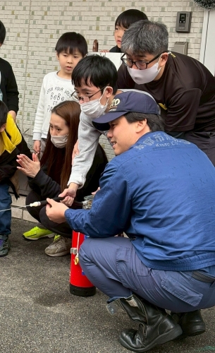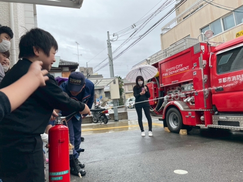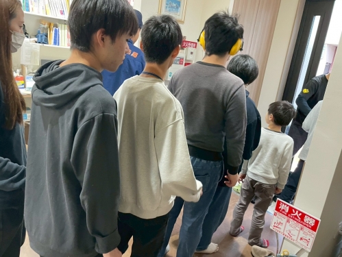 総合避難訓練 posted by ハニーレモンスタッフ 2025.12.25 避難訓練 今年も西八条消防署の消防士さんに 来ていただき、避難訓練を行いました。 ショートステイ レモンDランドと合同で行い、 ショートステイのある隣の建物へ移動し、 火災時の避難訓練を行いました! 火災報知器のサイレンが鳴るということで 耳を塞ぐ子どもたち…お喋りが多かった 小学生低学年チームもサイレンが鳴ると 静かにしていました^_^ 生憎の雨天でありましたが、 屋根の下から消火器を使用した 消火訓練体験もさせていただきました! 避難訓練