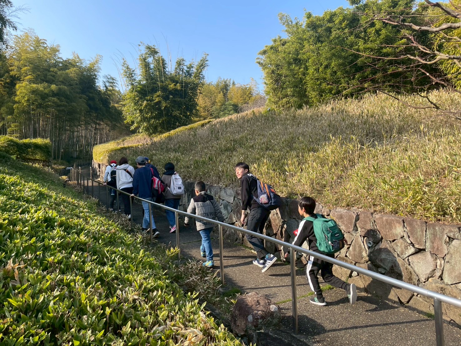 課外活動 2026.01.17 洛西竹林公園 洛西竹林公園へ行きました!竹林の間を散歩し、冒険みたいで楽しかったようです^_^公園では滑り台や野球をしたり、かくれんぼをしたり元気に体を動かして遊び posted by ハニーレモンスタッフ 公園・体育館